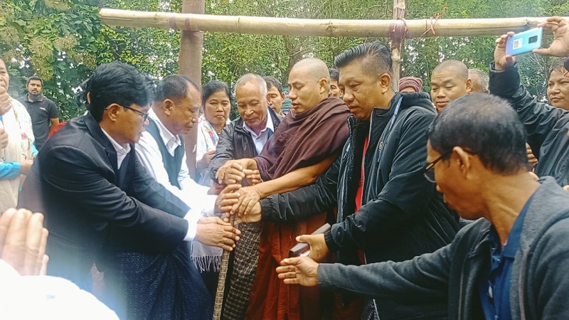 কাপ্তাইয়ের ঐতিহ্যবাহী চিংম্রং বৌদ্ধ বিহারের প্রবেশদ্বার তোরণের ভিত্তিপ্রস্তর স্থাপন