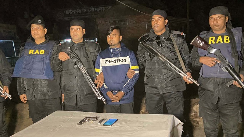 মাওনা বাজারে যৌথবাহিনীর ঝটিকা অভিযান: অস্ত্র ও গুলিসহ দুর্ধর্ষ সন্ত্রাসী আকাশ আটক
